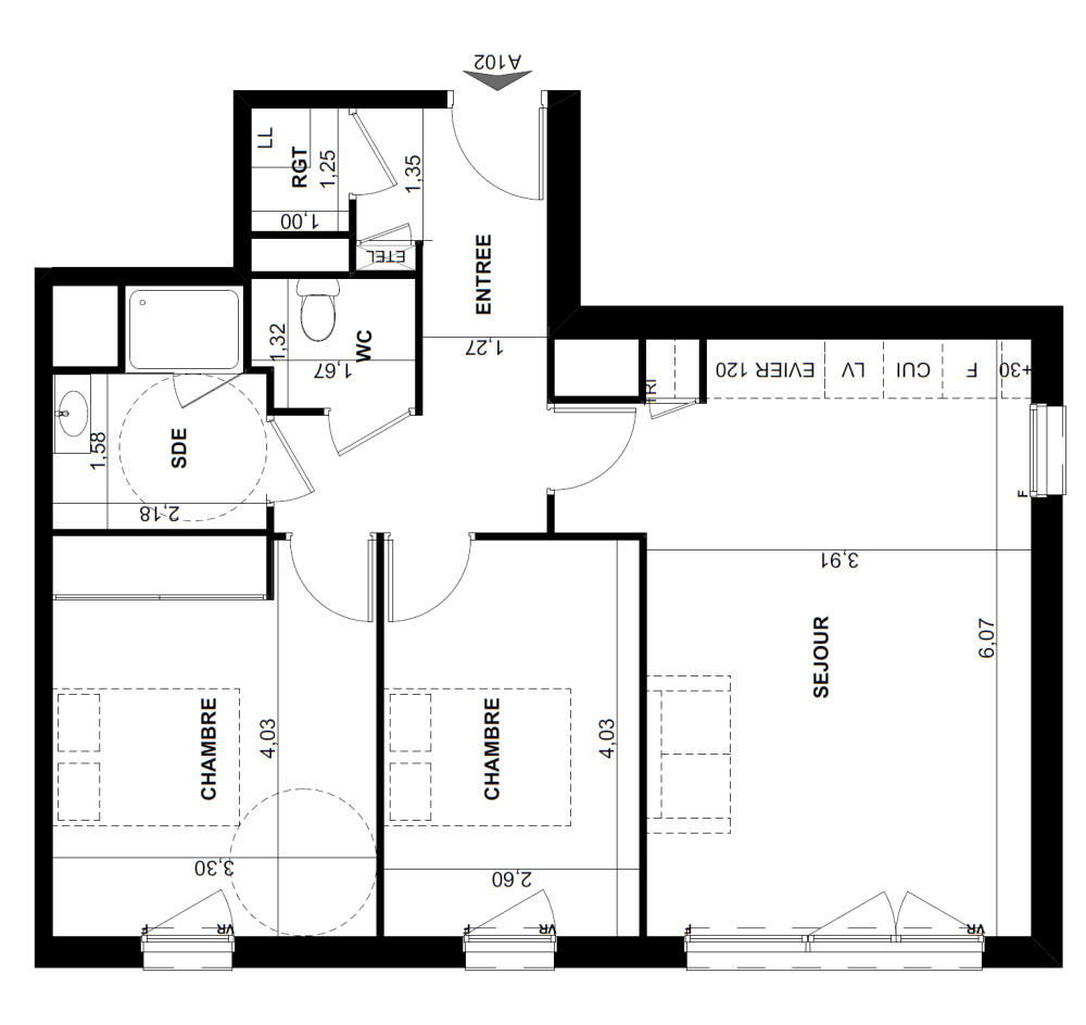 Appartement Type 3 - 59 m2 - Troyes